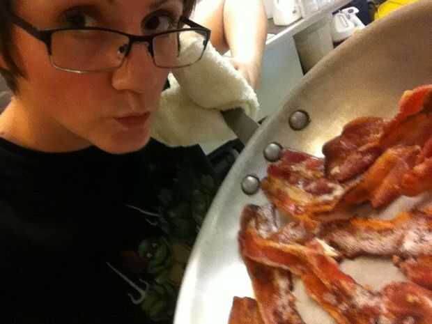 Disfrute de este tiempo. Saborearlo. Bacon es el lugar más feliz sobre la tierra. Nunca olvidar estos momentos de la vida. Cocinar tocino... ahhhhhh.