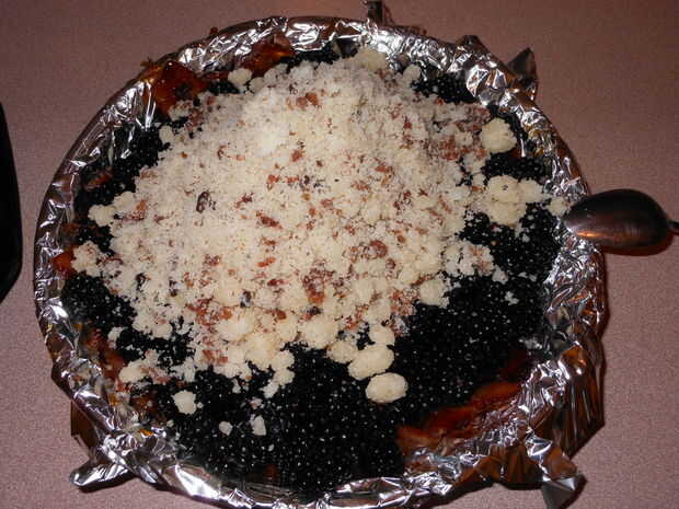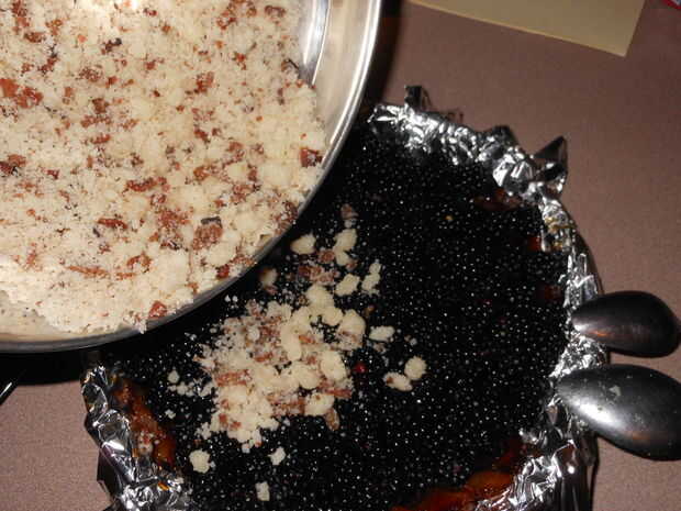 ingredientes :1 9″ base de tarta (puede comprar uno congelado o hacerla usted mismo)Flan de vainilla 2 tazas (instrucciones más abajo)2 tazas de moras del Himalaya (cosecha de instrucciones y más información puede encontrarse en invasivore.org )Instr