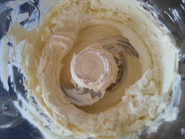 Colocar el queso crema en un procesador de alimentos. (O el uso mezclador de tazón de fuente y de la mano). Batir el queso crema hasta que quede lisa. Añadir la mantequilla en un bit a la vez. Continuar batiendo hasta que quede suave. Añadir el azúcar y la vainilla y mezclar hasta que es glaseado!