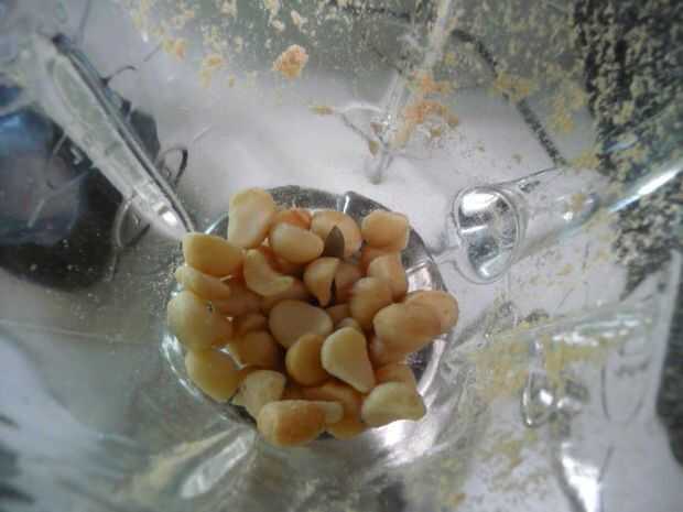 Añadir las 4 galletas reservadas a la licuadora. Añada 1/4 taza de nueces de Macadamia y el azúcar. Ráfaga-mezcla hasta que quede finamente molido. Añadir esto a las migas de galleta y revuelva para combinar.