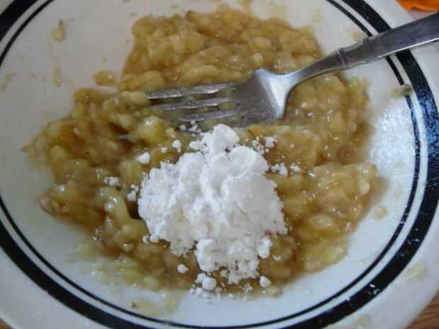Sacar los plátanos sin usar de la nevera. Triturar bien con un tenedor. Poco a poco espolvorear/revolver 1/3 taza en polvo de azúcar. Revuelva bien hasta que quede suave.