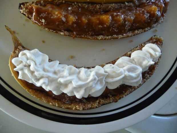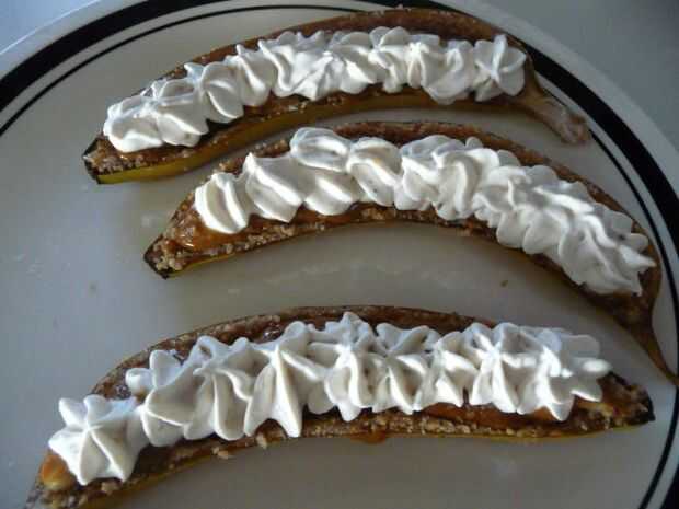 Poon una vez enfriada, sel plátano frío crema en una manga pastelera provista de una punta de estrella mediana.