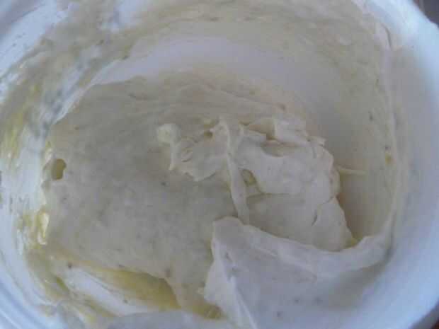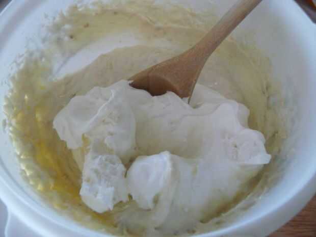 Plegable en 2 tazas había descongelado Cool Whip con una cuchara de madera.