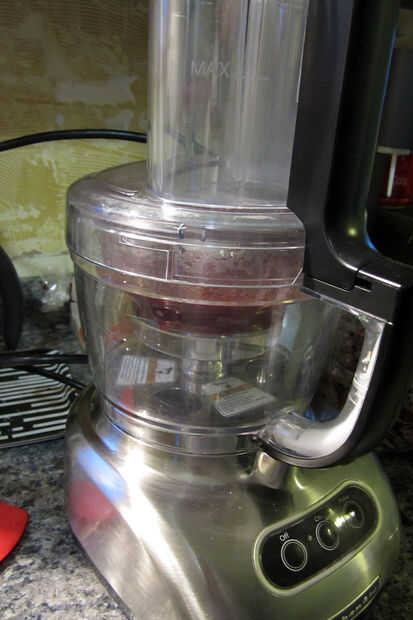 Tomar 1/2 una bolsa de fresas congeladas y los echan en una olla junto con un par de cucharadas de azúcar y media taza de agua. Poner a hervir y dejarlos hacer su cosa hasta que las fresas son muy suaves y desglosado, y el agua se evapore. Deja que se enfríe un poco, luego salir de su procesador de alimentos o licuadora y Equipamentos de la mezcla hasta que quede suave. Pulse el botón a través de un colador fino para retirar las semillas o cualquier bit weird y póngala a un lado.
