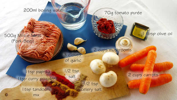 1. comenzar con la preparación de los ingredientes: picar el ajo, cortar los champiñones, cortar en cuadritos las zanahorias, cortar las patatas, cortar el calabacín (zucchini) y rallar el queso