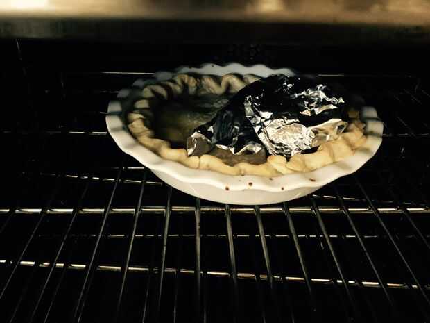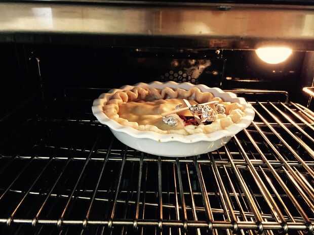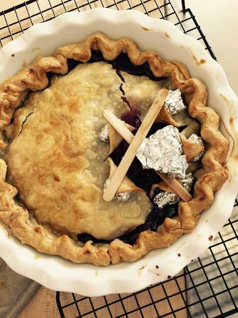 Cuando su pie está bien dorado (lavado de huevo!) y el jugo de la baya ha burbujeado para arriba de manera pintoresca, sacar el pastel del horno y coloca sobre la encimera o una rejilla para enfriar.