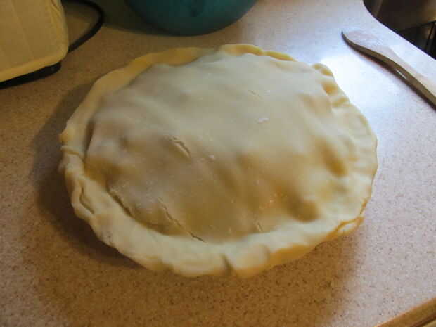 Con los dedos, pellizcar los bordes de la tarta junto - todo el camino alrededor de la tarta