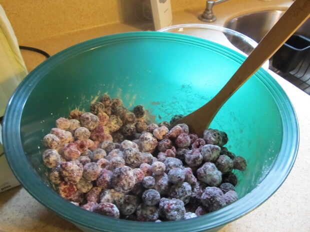 Mezcla hasta que las bayas están cubiertas en azúcar y almidón de maíz