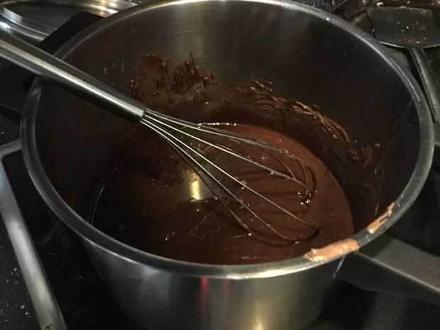 Mientras que la torta esta en el horno, puede empezar en el "tazón de fuente de chocolate" para servir. Empezar por la fusión de chocolate.