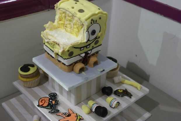 Esta tarta de Bob esponja 3D era muy difícil crear derecho para arriba.