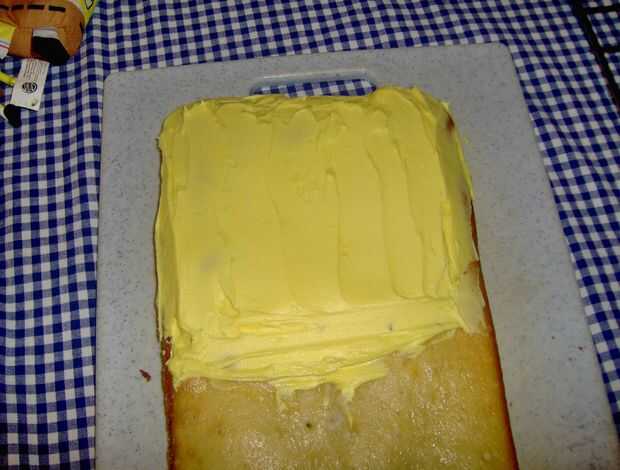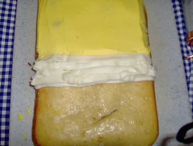 Frost 1/2 superior a 1/3 de pastel amarillo.