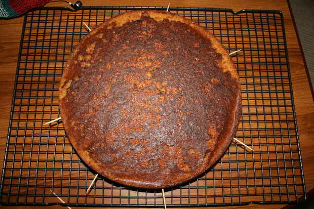 Seguir tirando hasta que se corte limpiamente a través de la torta.