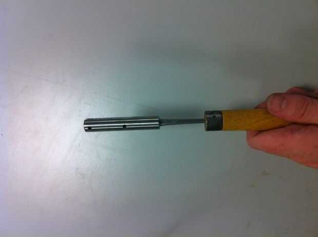 Montaje de las manijas a los adaptadores en el paso anterior es relativamente sencilla, mientras la espiga de tamaño correctamente. Colocando el punto de la espiga en el agujero de la manija y empujando obtiene la mayoría de la forma, sino que quedan te recomiendo golpear un par de veces con un mazo blando.
