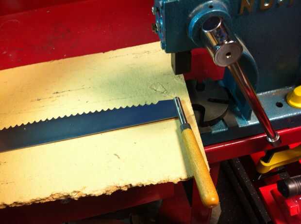 Decidí agregar un mango antes de molerlo un borde en la hoja de modo que tuve que sostenerlo con. Esto fue quitada más adelante para el lijado de la hoja, pero he puesto el paso en ahora para que sepas cómo hacerlo.