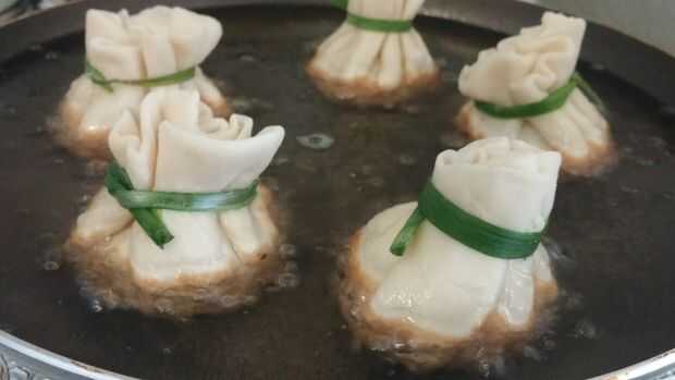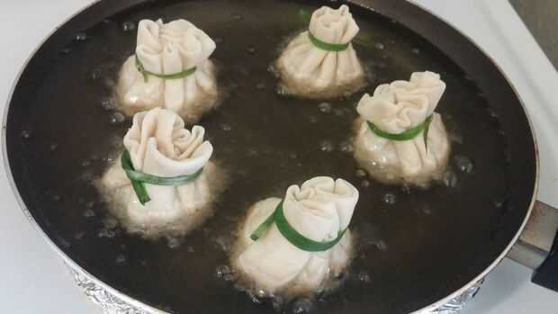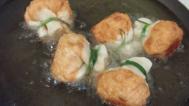 Calentar el aceite para freír sobre llama mediana. Una vez que el aceite se calienta, cuidadosamente deje caer la bolsa de dinero en el aceite.