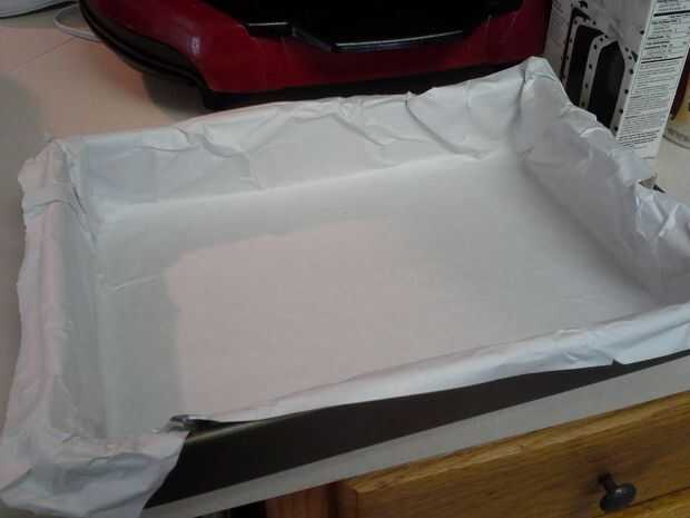 Precalentar el horno a 350. Línea una cacerola de 9 x 13 con papel sulfurizado.