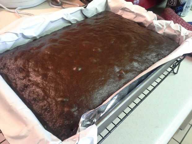 Una vez es pastel y un palillo insertado en el centro, éste salga limpio, sacar torta de refrigeración rack y cool hasta sala temparture, 45-60 minutos.