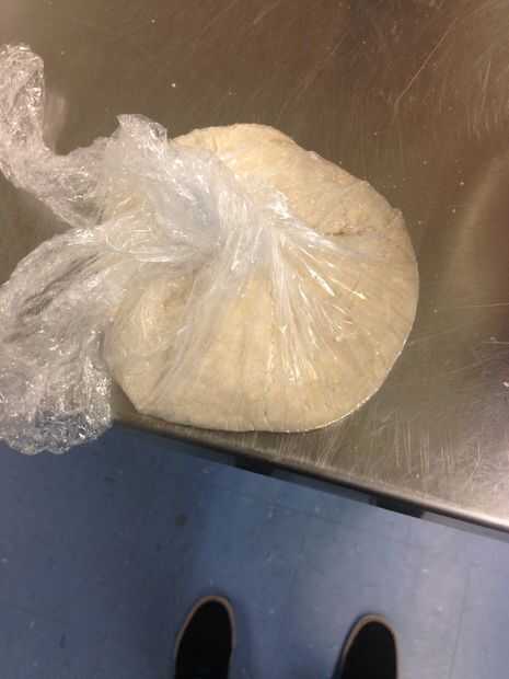 Poner la masa en un plástico y déjela reposar durante 15 minutos en nevera.
