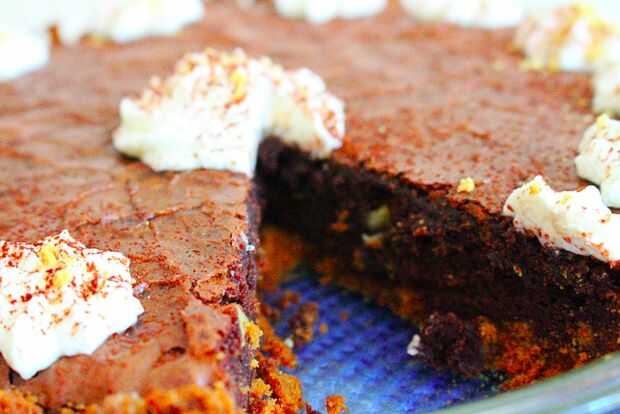 Chocolate Xocai nuggets enriquecen esta torta brownie sin azúcares añadidos, sólo gránulos de fructosa y compota de manzana en lugar de azúcar y mantequilla.Las pepitas de chocolate en esta receta nutritiva, cargado con fibra, balance del colesterol,