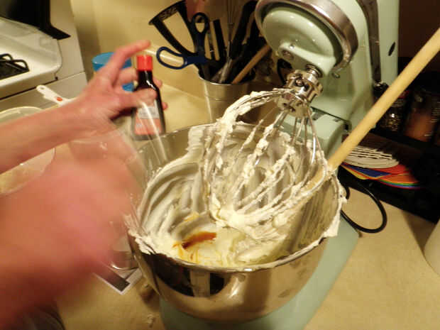 Añada la vainilla y continúe batiendo a baja velocidad para mezclarlo suavemente.
