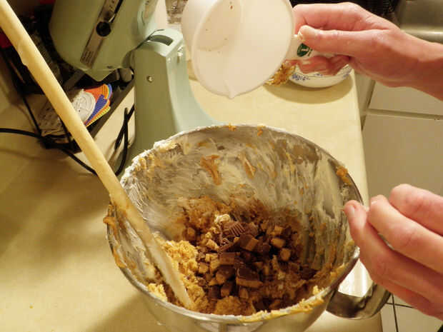 Añadir la mantequilla de maní a la mezcla de mantequilla de maní y crema de queso. Revuelva con una cuchara hasta que combinado uniformemente.
