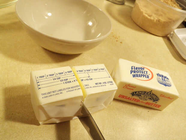 1-1/2 poner palillos de la mantequilla en un tazón y deje que se ablande.