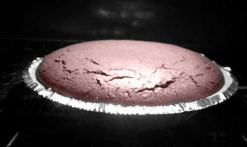 • Hornear la tarta en el horno por 1 hora a 350 f el. no se preocupe cuando el pastel de los soplos para arriba, se instalará cuando se retire.