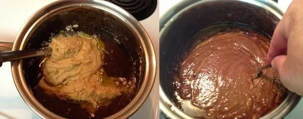Añadir la primera mezcla de la masa en la cacerola que contiene la mezcla de chocolate y café. Util de la mezcla, bien incorporado.
