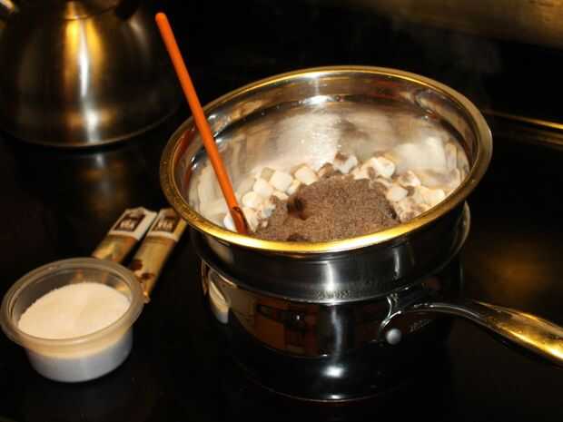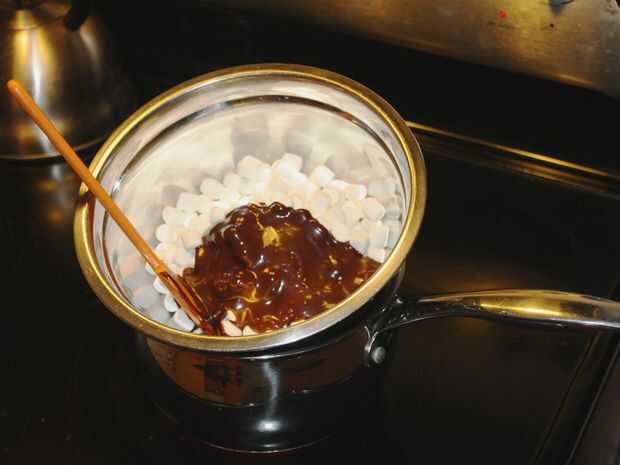Mantener la agitación y calentamiento hasta que los malvaviscos se derritan y la mezcla es lisa