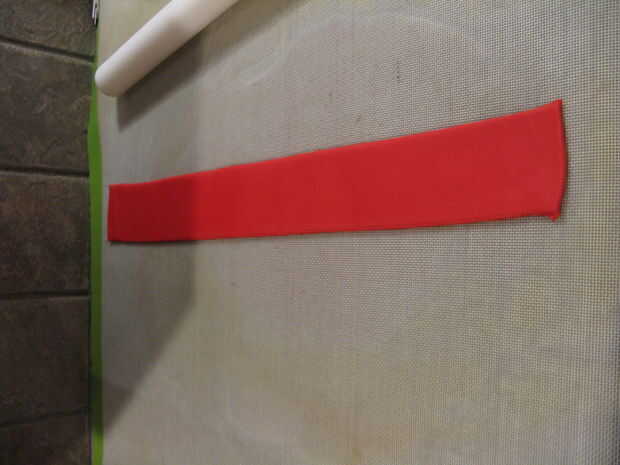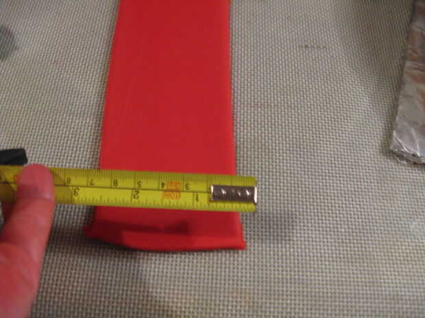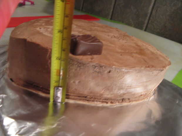 Asegúrese de que la tira es suficientemente amplia como para hacer un 3/4 de pulgada por encima de la torta (medida con chocolate en la parte superior) y deje que la tira se seque durante unos 15 minutos. Debe estar suficientemente seco para no combarse o inclinación.