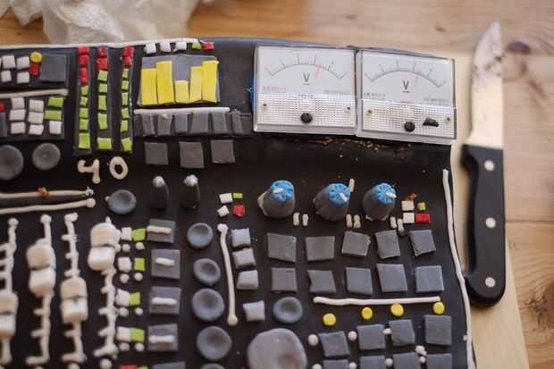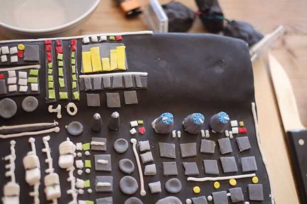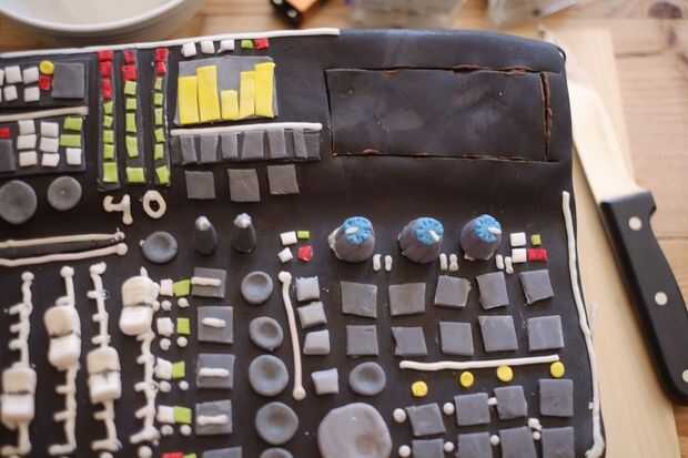 Forrar el espacio hueco con abrigo de saran y coloque el voltímetro. He utilizado algunos trozos de fondant extra. para sellar los bordes. Usted debe hacer esto una fácil de montar y quitar poco probablemente no se enchufa la batería hasta más tarde y no quieres sentirte triste si necesita hacer ajustes como oh no sé... reemplazar la batería.