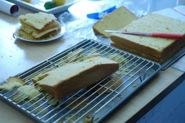 4. recortar pasteles con cuchillo. Corte las cortezas superior de las tortas para que tienes una superficie plana uniforme y crea una buena superficie para formación de hielo se adhieran demasiado. Cortado el pastel de pan de pan diagonalmente para hacer la parte superior de la consola y remendada defectos con migajas de la torta.