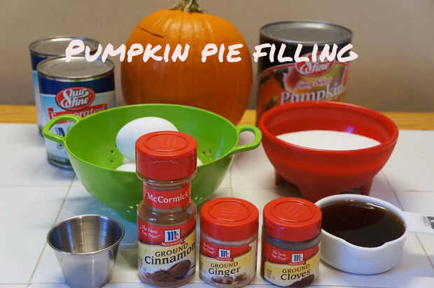 1 calabaza de lata de 15 oz (no el relleno de la calabaza) seguí la receta en la lata para pastel de calabaza y añadir 1/4 de taza de maple syrup puro en lugar de azúcar y crema de leche en vez de la leche evaporada.