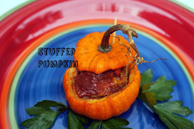 Pie de concha: usé mi receta pero se puede utilizar un simple o doble de almacén comprado tarta y utilizar un poco de azúcar y una clara de huevo batida para cubrir la masa. usé una gran calabaza porque estaba creando este proyecto sin instrucciones y extra necesario solo en caso. La receta es para una poder más pequeña. Al horno un pastel de carne mini en el mini calabaza.