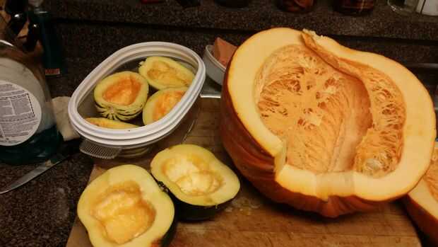 En un procesador de alimentos moler el cereal a la consistencia de la harina de maíz. Agregar el aceite de oliva y revolver la mezcla. Añadir más aceite según sea necesario hasta que el comienzo de la mezcla ligeramente agruparse. Pulse en la tartera y poner en la nevera por alrededor de una hora. Abrir la calabaza y la calabaza, limpiar las semillas, cortarlas en trozos más pequeños y vapor durante unos 25 minutos hasta que estén suaves. Raspar hacia fuera la pulpa en un tazón.