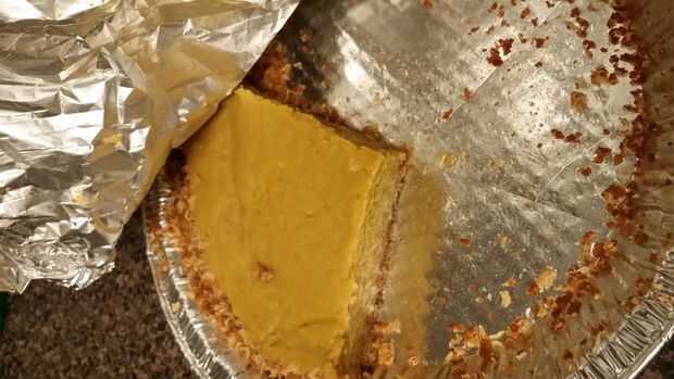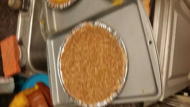 Pude hacer una foto antes de que se ha ido todo. Que quería hacer esta tarta una lttlie saludable, usé en lugar de utilizar una galleta o tarta regular de trigo integral y Cereal de salvado. Tenía suficiente mezcla de calabaza/Squash para hacer 3 tartas pero los ingredientes a continuación son de 1 pie.