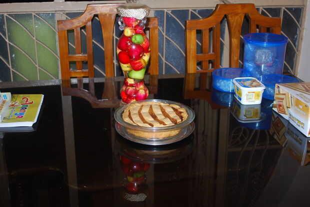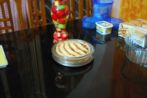 Pude hacer una foto antes de que se ha ido todo. Que quería hacer esta tarta una lttlie saludable, usé en lugar de utilizar una galleta o tarta regular de trigo integral y Cereal de salvado. Tenía suficiente mezcla de calabaza/Squash para hacer 3 tar