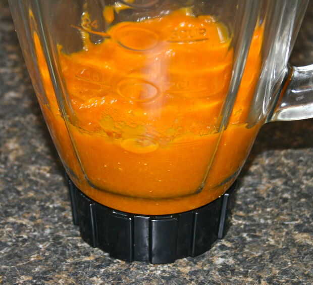 Mezcla el puré de calabaza en alto hasta que esté suave.