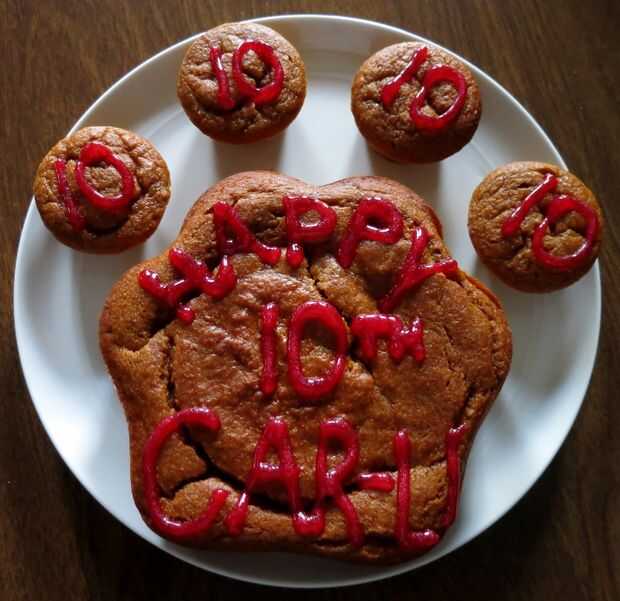 Puesto que es una cantidad bastante pequeña de azúcar por mordedura, no me importa usar comprados en tiendas decoración tubos de glaseado para decorar la torta. Usted los puede recargar con un glaseado de su preferencia: perros love mantequilla de maní; queso crema bajo en grasa, queso cottage o yogurt bajo en grasa mezclado con un poco de miel. Dejé la mayoría de las mini magdalenas llano y mis perros no tuvieron problemas engullendo ese camino tampoco!