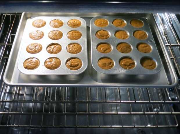 Hornee hasta que un palillo insertado en el centro, éste salga limpio. Se trata de diferentes cantidades de veces dependiendo del tamaño de sartenes utilizadas. Las mini magdalenas tuvieron unos 11-13 minutos, mientras que la sartén de 6 pulgadas tomó 23-27 minutos en mi horno (yo uso el horneado por convección).