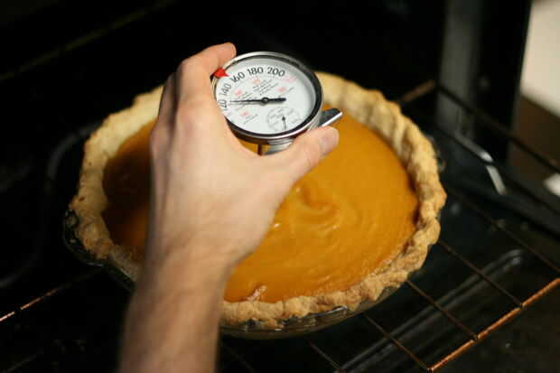 Illustrated de Cook dice cocinar la tarta hasta que el centro es de 175° F. Cuando mina alcanzado esta temperatura, una selección de diente todavía no sale el pie limpio, pero fui con ella de todos modos y había sacado del horno. La tarta haya enfriado durante unas 2 horas. El centro estaba apenas cocinado, y corte un trozo limpio era un desafío. La próxima vez te probablemente cocinar la tarta hasta que una selección de diente salga limpia--tal vez más tiempo de 5 a 10 minutos a 300° F después de que el centro llegue a 175° F.