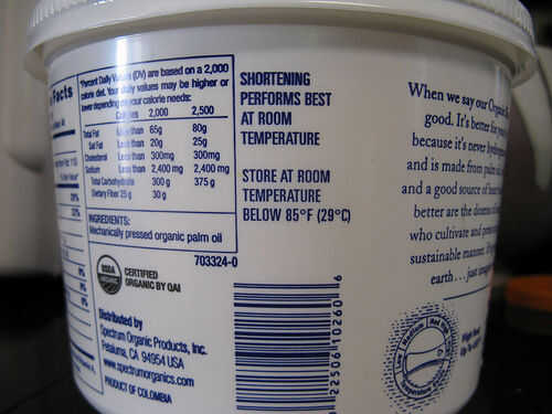 1/4 taza manteca vegetal - no hidrogenado aceite de Palma, si usted puede encontrar Crisco o acortamiento de crisco-como si usted no puede