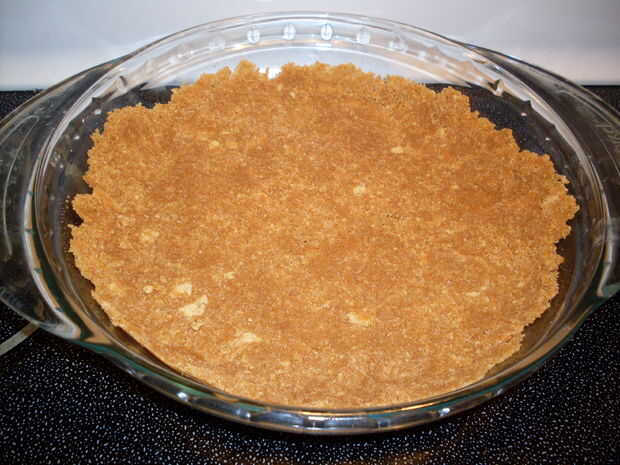 Ahora sólo mezcle las migas de galleta, azúcar y mantequilla. Introdúzcalo en una tartera de 10 pulgadas. Hacerlo incluso como posible, y como arriba de los lados que puedas.