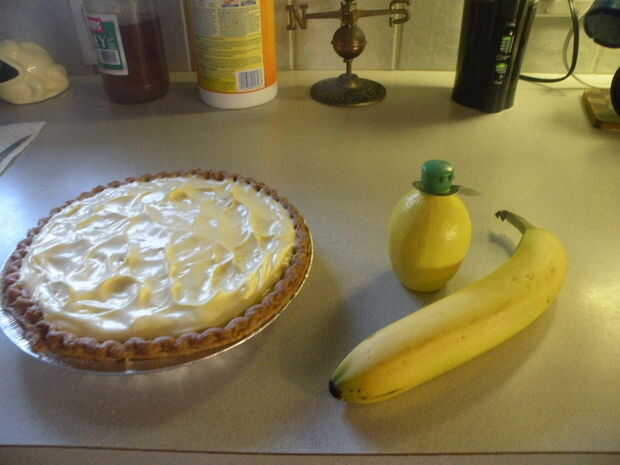 Rodaja restante plátano; Unte las rodajas con jugo de limón. Colocar rodajas de banana en el pie. Adorne con COOL WHIP adicional, si lo desea.
