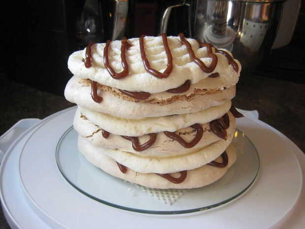 Nota: Las capas de merengue absorben la humedad y ser muy suaves después de unos días en la nevera. Es mejor montado y disfrutar inmediatamente o dentro de un día.