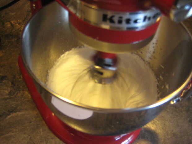 2. batir las claras de huevo para espesar. Lentamente añada el azúcar y continuar a batir hasta que formen picos.