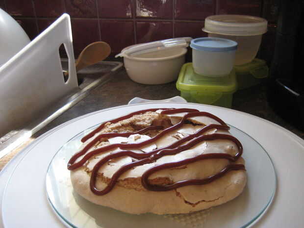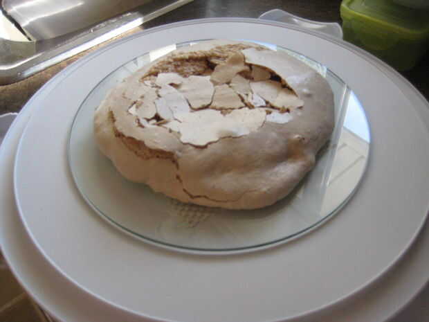 2. en un tablero de la torta o placa, tubo alguna crema para que no salga de su primer merengue.