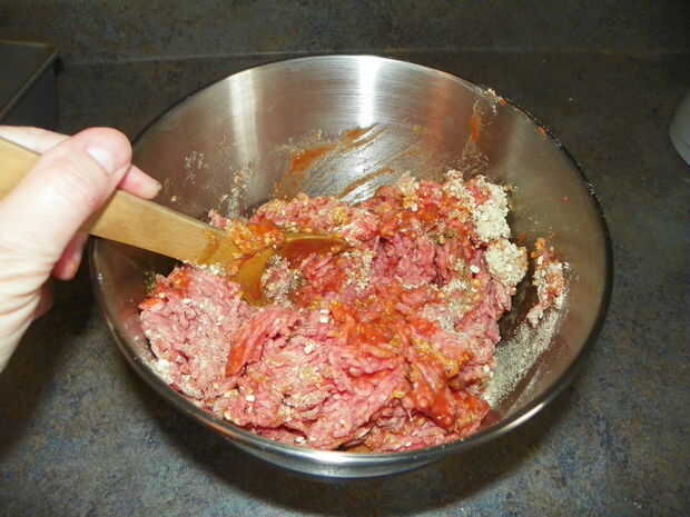 Cupcakes de pastel de carne hechos de una manera sencillaPaso 1: Mezclar los ingredientes Usé 1 y medio de libras de carne de hamburguesa1 gran Jalepeno1 pimiento amarillo3 huevosEspecias (eneldo, comino, Chile en polvo, ajo en polvo, perejil)SalPimi