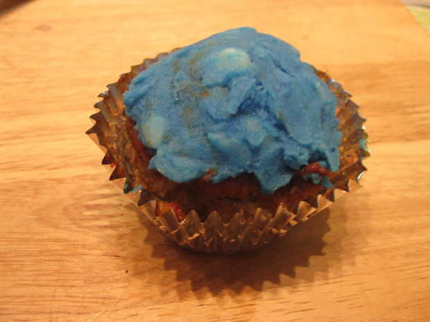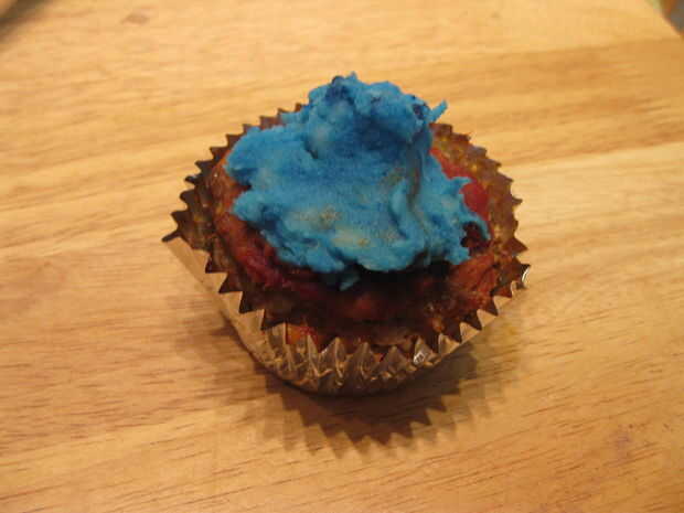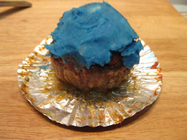 Difunda la guinda en colocando una cucharada de la misma en la parte superior, girando el rollo de carne en una dirección mientras que se separa en la formación de hielo en el otro. Para añadir un efecto más realista, puede hacer un "remolino" la espátula de cuchillo/offset de mantequilla hacia arriba y girando la muñeca.