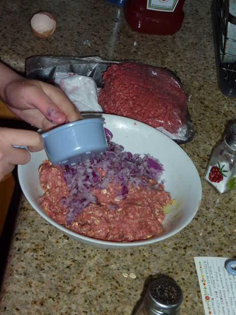 Añadir la cebolla picada. Continuar mezclando con las manos.